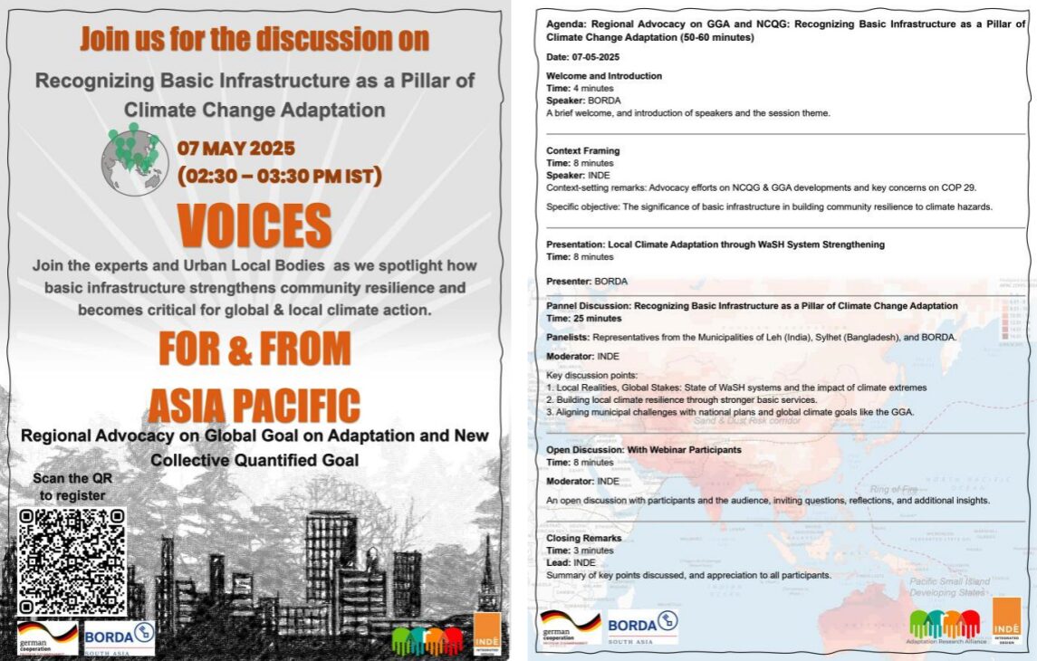 Outcomes from the webinar session hosted by Integrated Design (INDÉ) and BORDA South Asia centered on sharing real-world experiences and strategies from two municipalities: Leh (India) and Sylhet (Bangladesh).